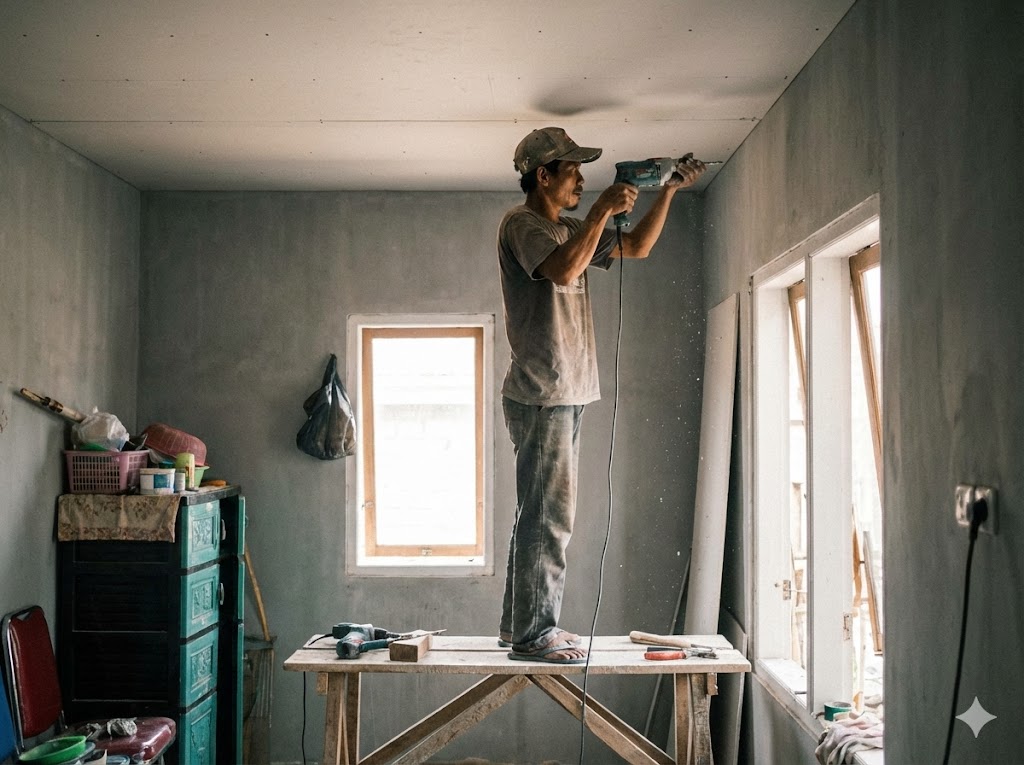 Tanya Biaya"Plafon PVC motif kayunya bagus banget, persis kayak kayu asli tapi anti rayap. Pemasangan juga cepet cuma 2 hari kelar satu rumah."